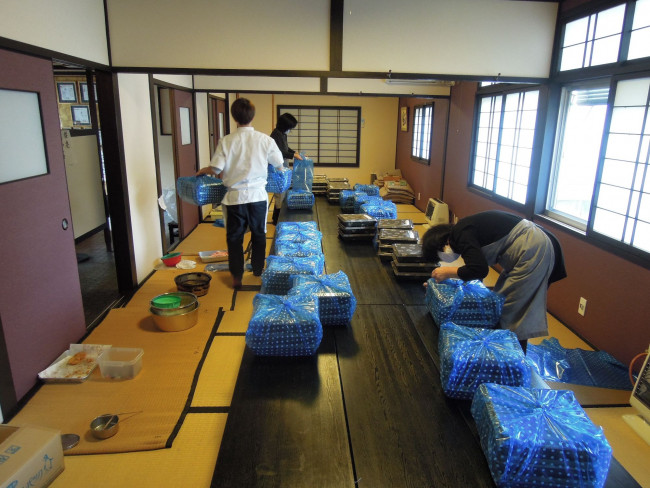 仕出し弁当が100人前入ってて、お昼は観光バスでの宴会もありました。