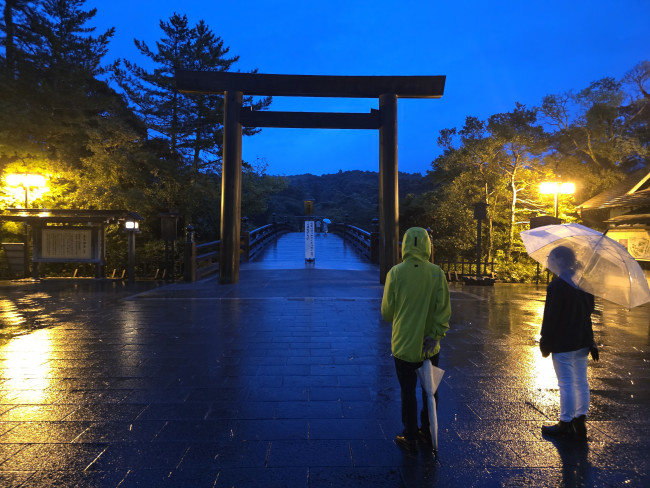 4時に自然と目が覚めて、神宮に向かいました。小雨から雨が止んで、無事にお参りさせてもらえました。雨が降らずに川の水が少なかったので、いっぱいになっていて安心しました。不思議に川の水が透明で美しいのに驚いた。いつもは泥水になるのにね。