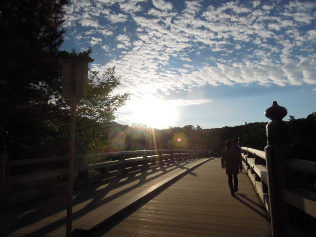 朝陽をいっぱいに浴びる宇治橋 しびれます!