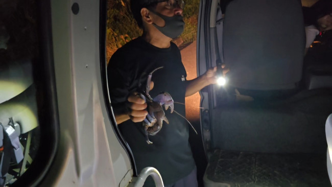 ツアー途中に、路上でヤシガニ発見! ガイドさん、素手で捕まえていました。(笑)