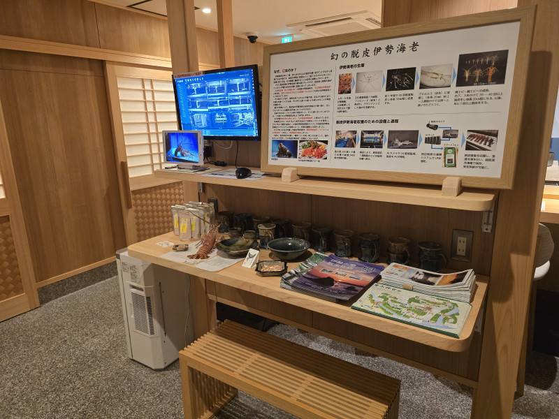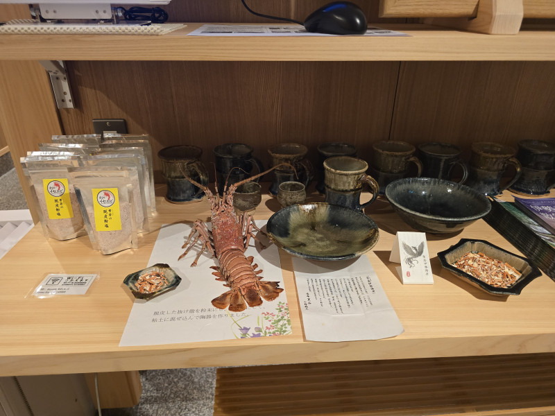 2025-09-18 仕事 脱皮伊勢海老ブース 念願であった、脱皮伊勢海老のブースが完成しました! 脱皮伊勢海老の生態も詳しく説明しています。 脱皮粉を使った陶器、お塩も販売しています! 伊勢海老の標本を不思議そうに見ています。(笑) PDFを開く 一覧へ戻る
