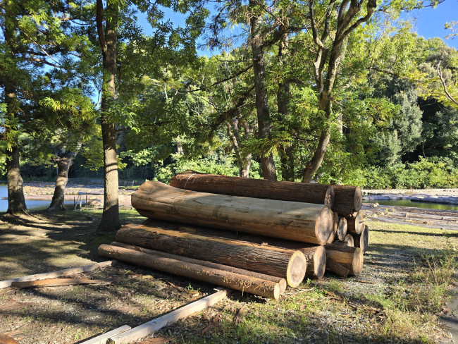 伊勢神宮直管の山田工作所です。主に社殿建て替えに使うご用材を工作する場所ですが、その中にあるこちらの貯木場の風景と空気が素晴らしすぎて圧巻でした。それは神様の住まいを作る御神木ですからね、もう気が凄すぎます。