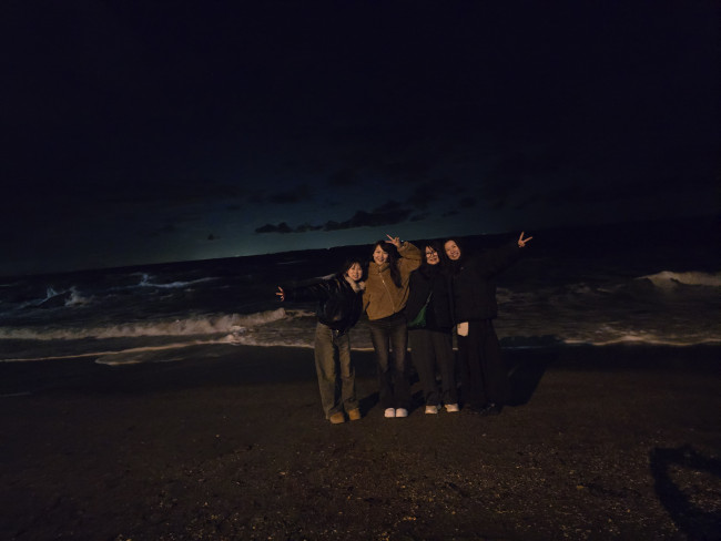 夕食も食べに来てくれて、二見のナイトツアーにお誘いしました! 波は凄いし、風も凄い、めちゃくちゃ寒いけど、そこが良いー。