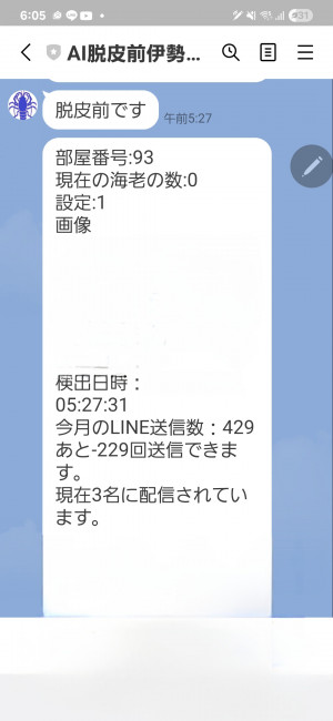 5時半に脱皮前検知AIカメラが作動!