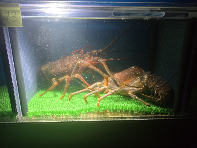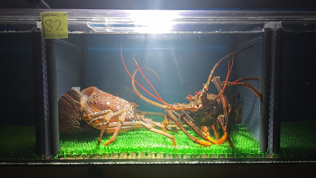 この2匹のメガ伊勢海老を今夜の予約のお客様に使います。楽しみでなりません!