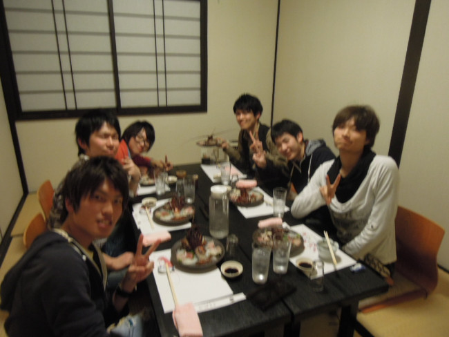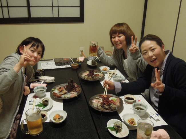 京都の大学生の方々です。 リッチですよね~ 伊勢海老料理食べられるなんて^^