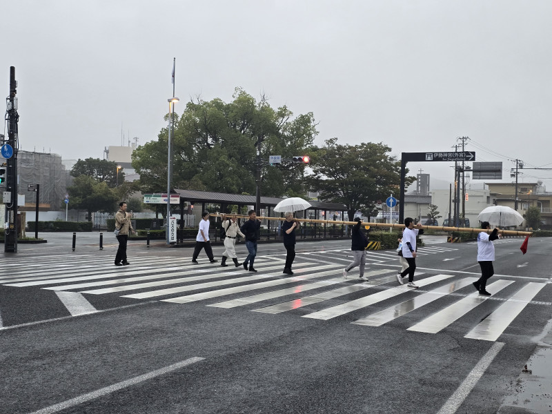 木遣り子が使うザイの材料にと、神宮から支給していただきました。 内宮近くにある工作所の銀杏並木は有名で何度か行きましたが、外宮のこの池の風景も別格に美しい。さすが神宮さんです。