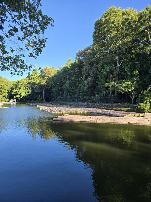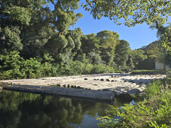 息を飲み込む美しさ、さあここはどこでしょうか? こちらは伊勢神宮直営の工作所内にある貯木場です。来年に行われるお木曳きの御神木もこちらにお納めして、遷宮のためのご用材となります。
